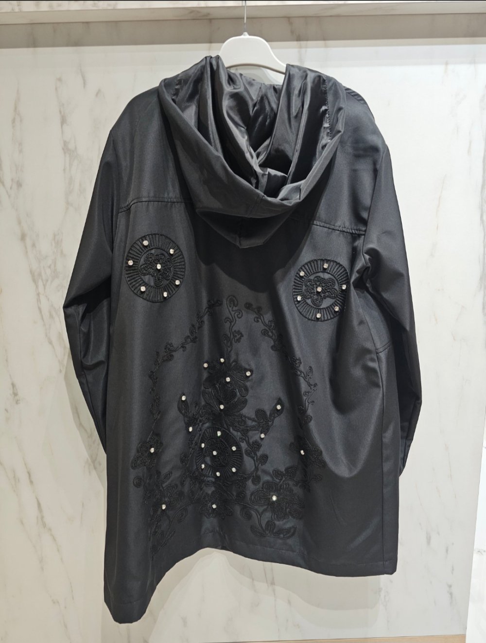 Boy : 90cm Beden : SM (38-40-42) LXL (44-46-48) Renk : Lacivert Bej Siyah Kalıp : Rahat kalıp Kapşonlu, taşlar dikmedir