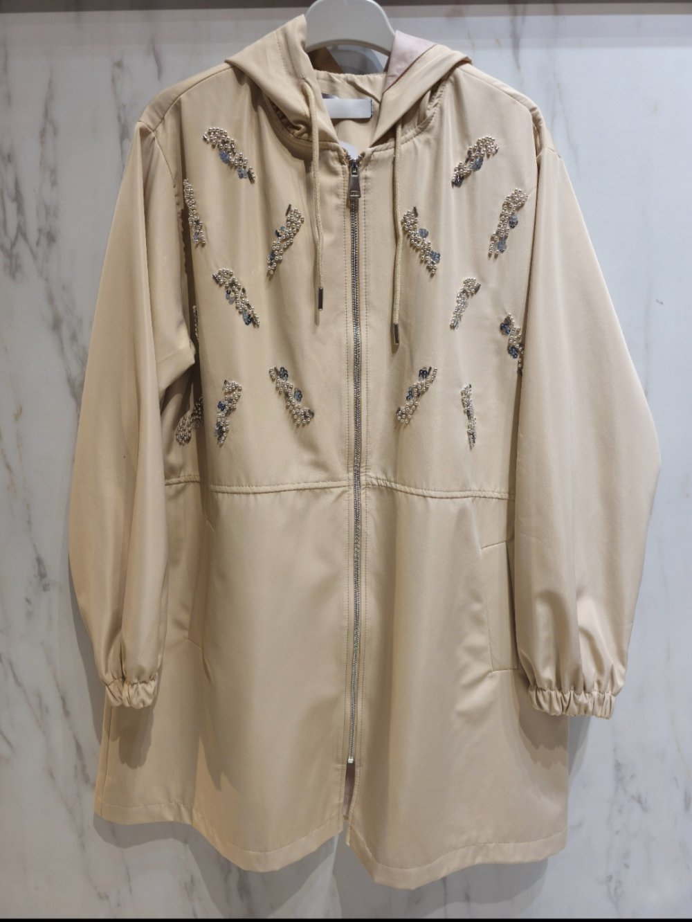Boy : 90cm Beden : SM (38-40-42) LXL (44-46-48) Renk : Lacivert Bej Siyah Kalıp : Rahat kalıp Kapşonlu, taşlar dikmedir