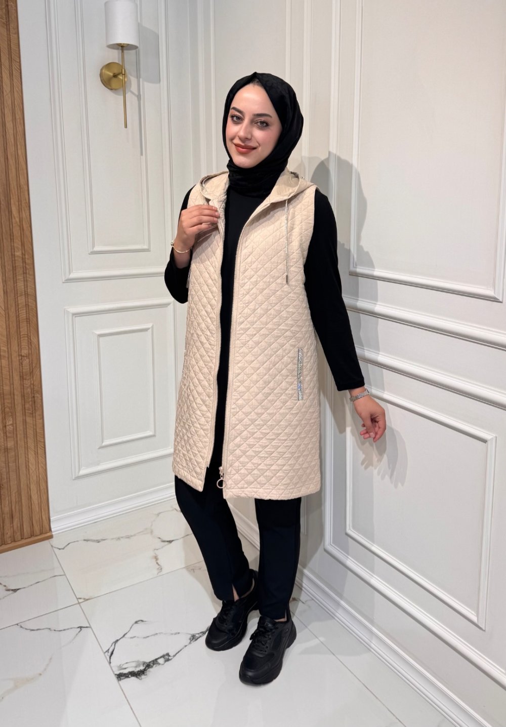 Günlük kombinlerinize zarif bir şıklık katacak cebi taşlı tesettür yelek, modern tasarımıyla Bahar Butik koleksiyonunda yerini aldı. %98 pamuk %2 polyester kumaş yapısı sayesinde rahat kullanım sunarken, kapüşon detayı ve ön fermuarı ile spor şıklığı bir araya getiriyor.