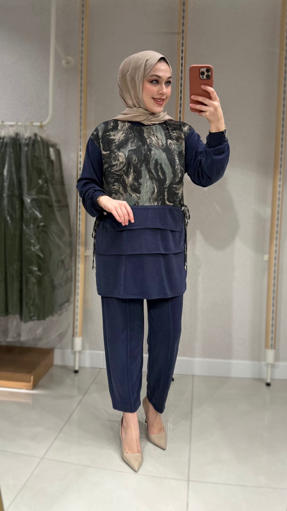 Ebru Desenli Takım Lacivert