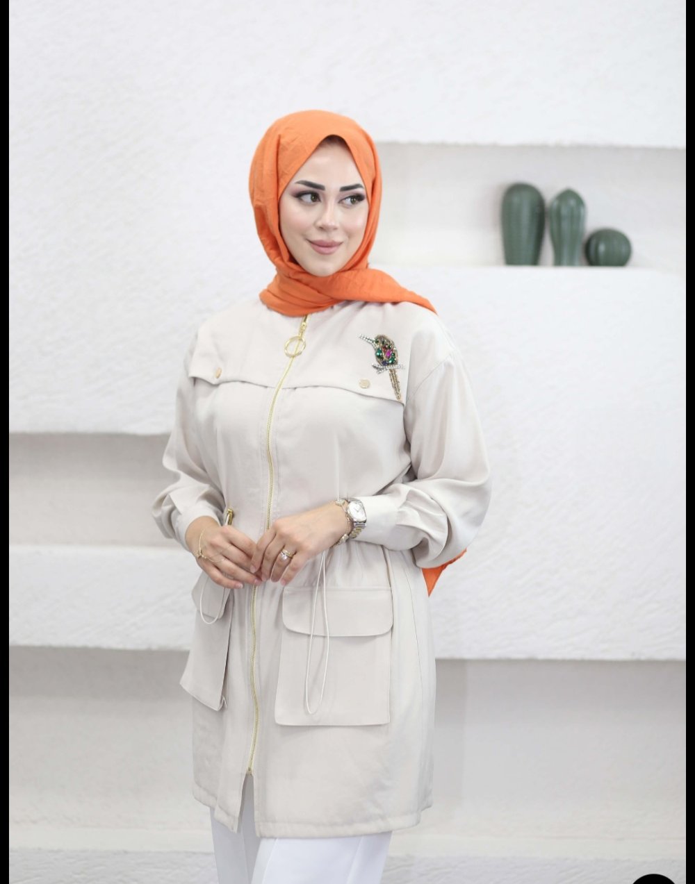 Yeni sezonun en zarif dokunuşlarından biri: Kuş detaylı beli büzgülü tesettür kap, Bahar Butik’in özgün tarzıyla hayat buldu. Kupra kumaşın dökümlü ve ferah yapısı, beli lastikli rahat kesim ve şıklığı tamamlayan kuş detayıyla bir araya geliyor.