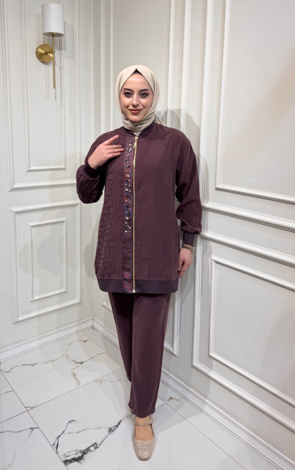 1. Kalite Tensel Fermuar ve Taş Detaylı Takım Modern ve zarif tasarımıyla öne çıkan Tensel tesettür takım, yumuşak dokusu ve nefes alan yapısıyla gün boyu konfor sunar. 1. kalite tensel kumaşı sayesinde hafif, dökümlü ve rahat bir kullanım sağlar. Ön kısmındaki fermuar ve taş detayları takıma şık ve göz alıcı bir hava katarken, rahat kesim pantolonu ile hem günlük kombinlerde hem özel davetlerde tercih edilebilir. Tesettür giyimde hem konforlu hem şık bir takım arayanlar için ideal bir seçimdir. Ürün Bilgileri Kumaş: 1. Kalite Tensel Beden: 1 (38-40) – 2 (40-42) – 3 (42-44) Tunik Boy: 80 cm Pantolon Boy: 100 cm Detay: Fermuar ve taş detaylı Şıklığı ve rahatlığı bir arada sunan bu tensel takım ile stilinizi zahmetsizce tamamlayın. ✨