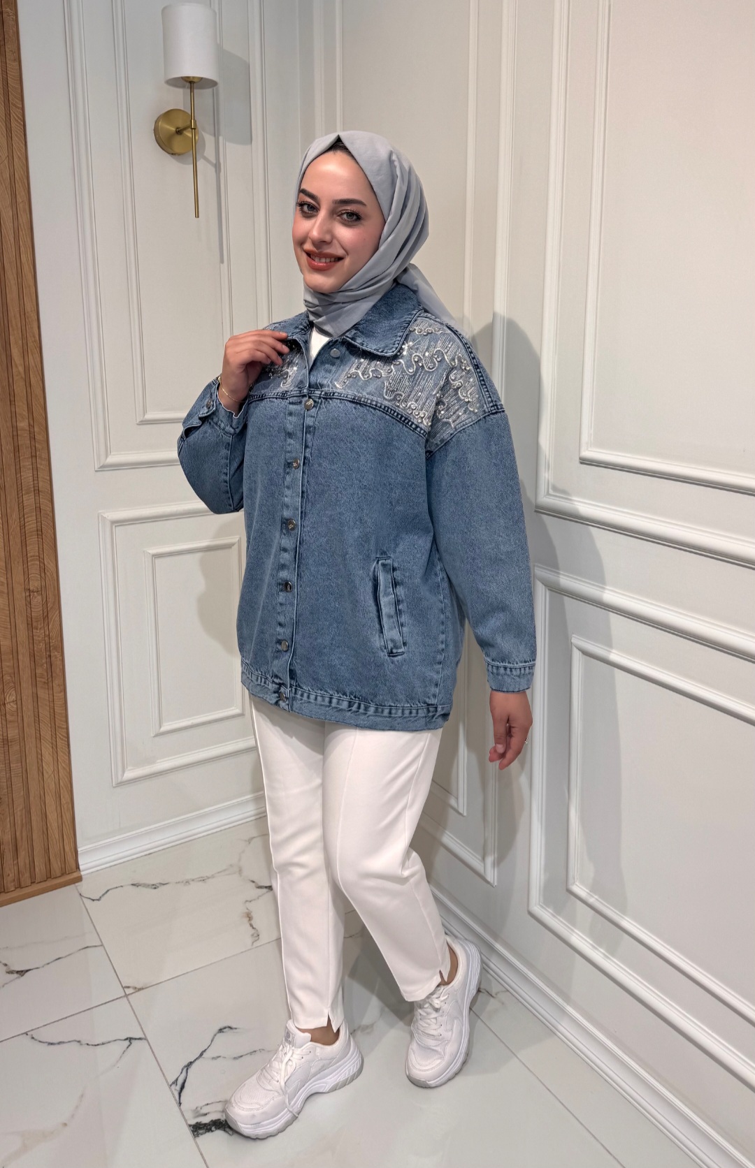 Taşlı Kot Ceket Mavi