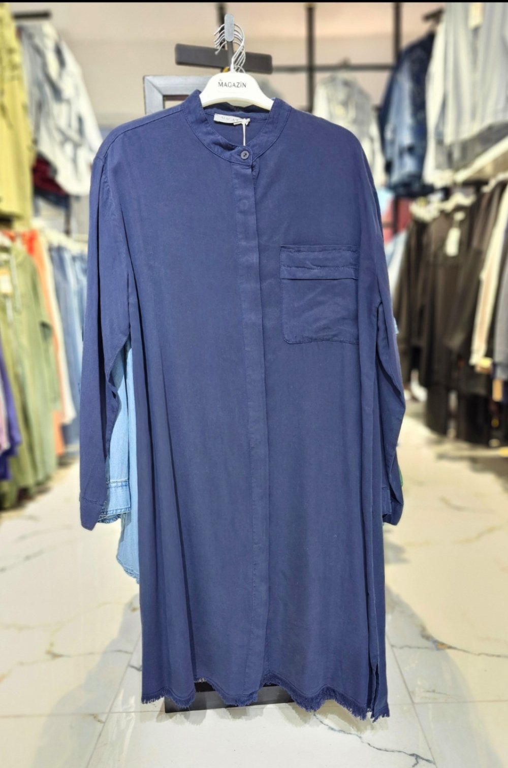 Uzun Boy Tensel Gömlek Lacivert