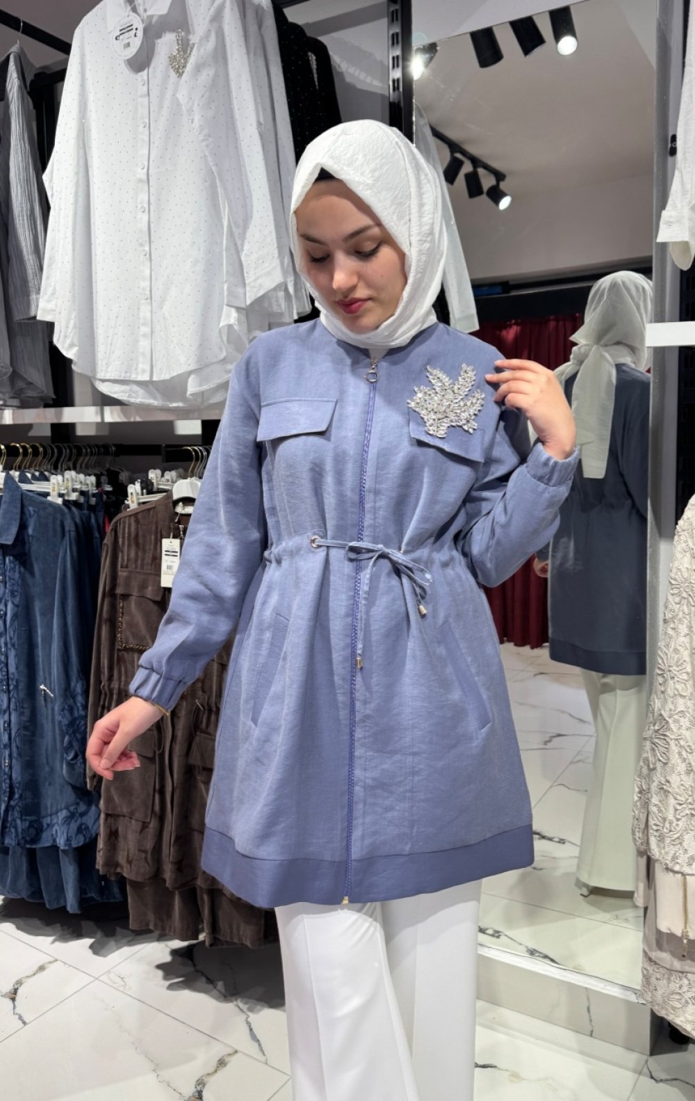 Zarif tasarımıyla stilinize ışıltı katacak BahAR Butik kap modeli, hem günlük hem özel gün kombinleriniz için şık bir tercih sunar. Taş detaylı yaka ve bel kısmındaki büzgü ile feminen bir siluet yakalanırken, ön kısmındaki fermuar sayesinde pratik bir kullanım sağlar.